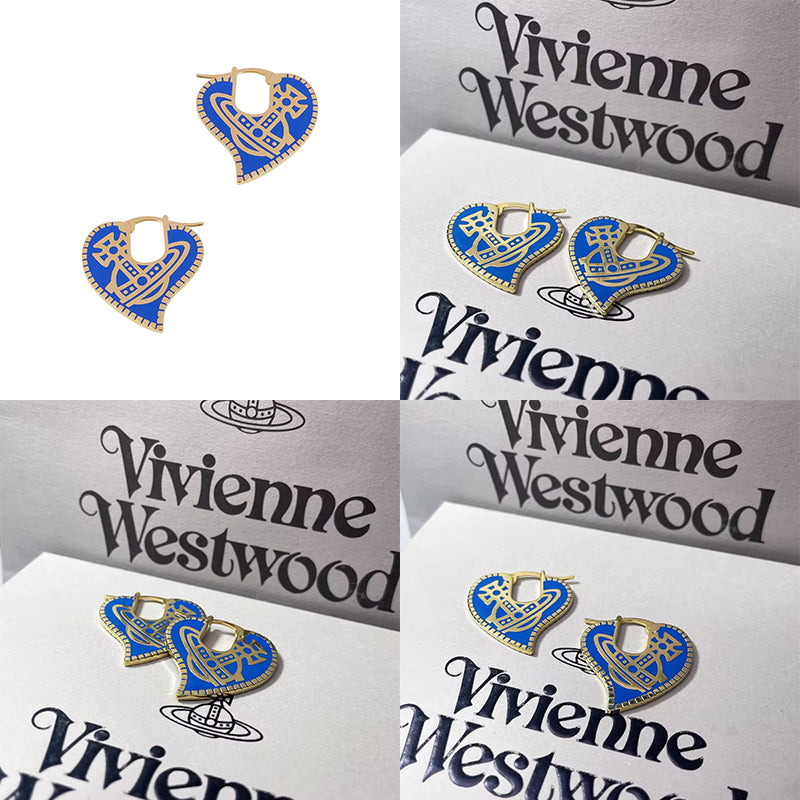 Heart Design Engraved Colored Orb Pendant Hooped Earrings (4 Colors)
